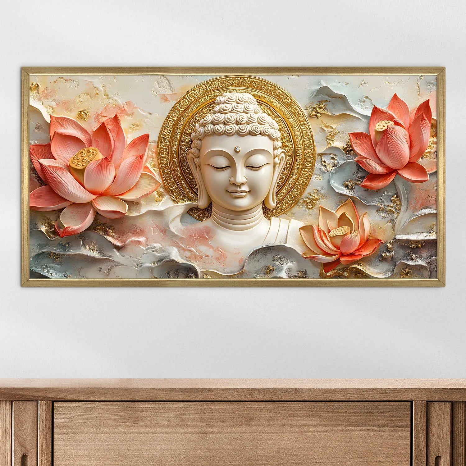 Buddha & Red Lotus Wall Canvas Painting For Home
