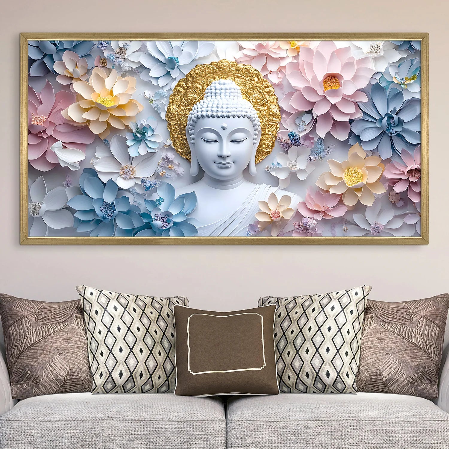 Buddha with Pastel Lotus Wall Canvas Painting For Home Decor
