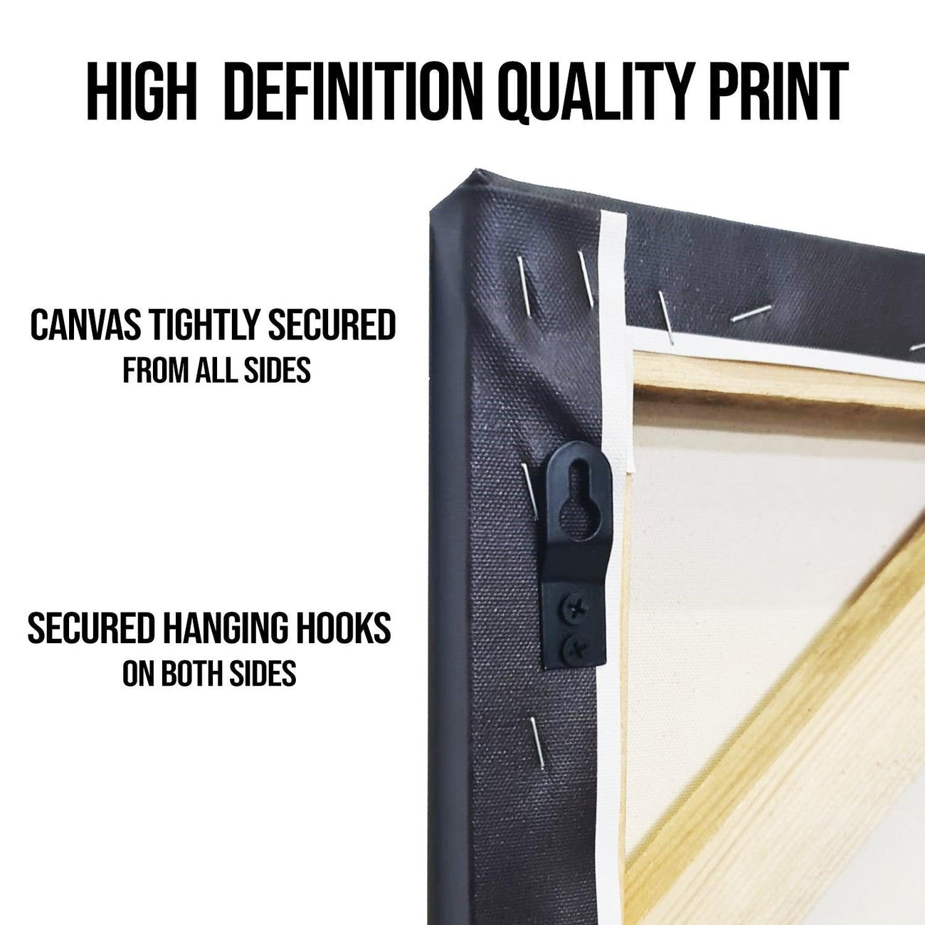 For our stretched canvas, no hooks needed—just rest the top edge directly on the nails for a clean, seamless display.